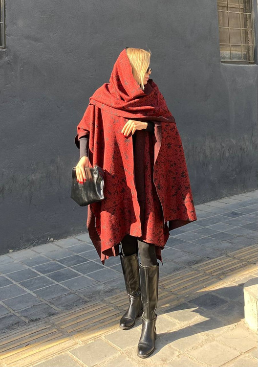 ست پانچ و شال بلک رد: جنس لنزو بافت کشی
