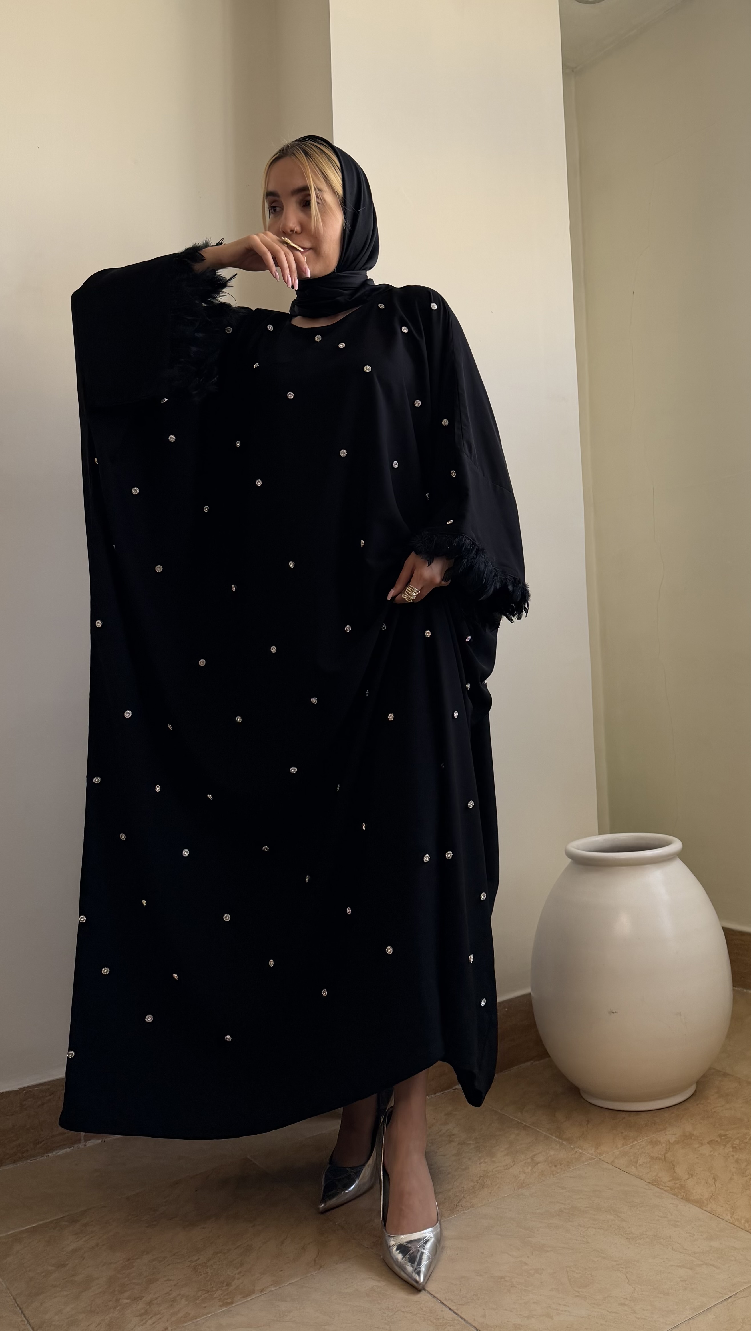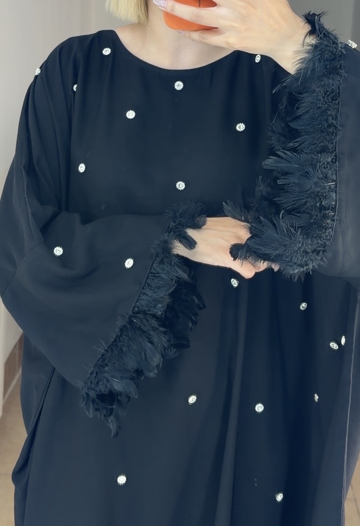 - پارچه بسیار مشکی و کرپه مرغوب ندا قطری - تن نما نیست - مناسب جنوب،بهار،تابستان - سر آستین پر با کیفیت استفاده شده همه ی نگین های رو عبا پانچ شده