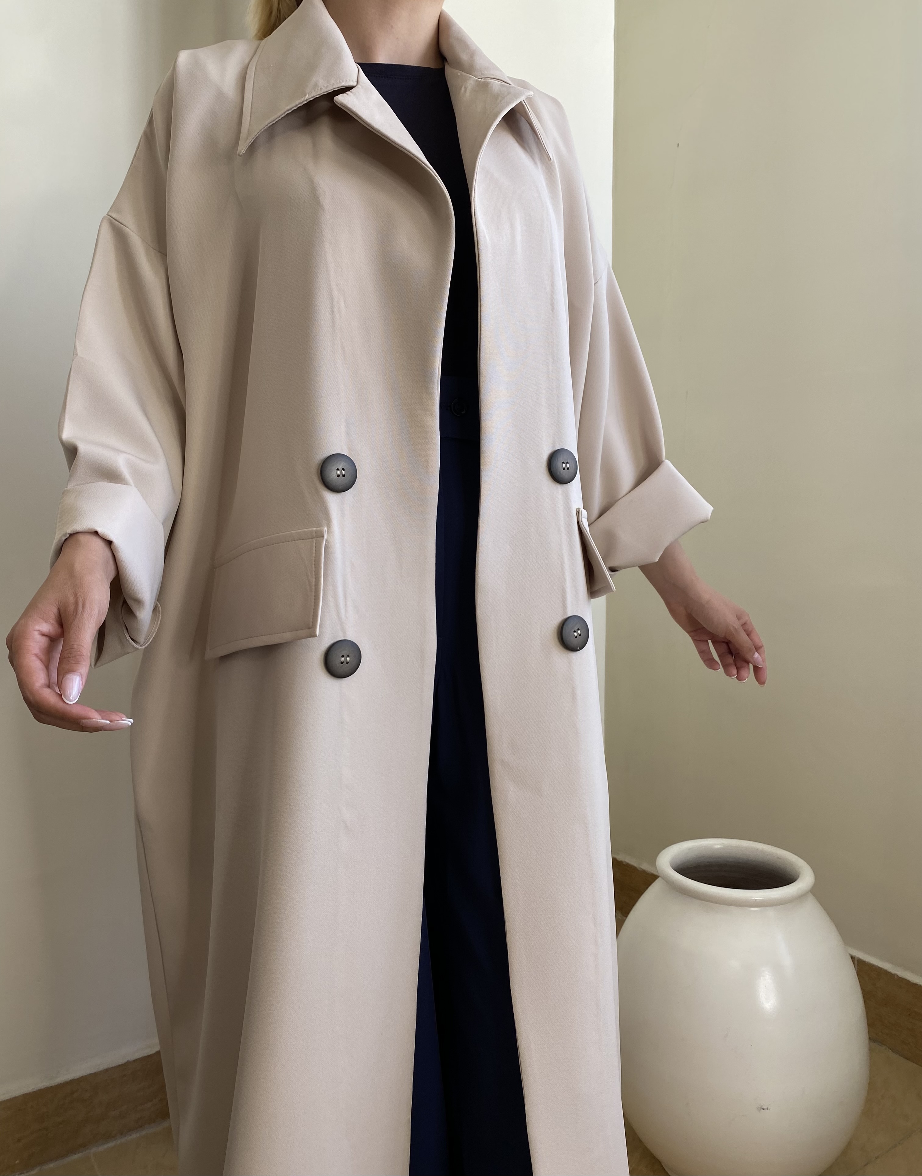 - پارچه مناسب بهار و تابستان - پشت کت چاک دارد - جیب جلو کت نما هست - سایز مدل ۳۶ هست و کت برای سایز ۴۶ و ۴۸ به این آزادی ایستایی ندارد اما اندازه هست