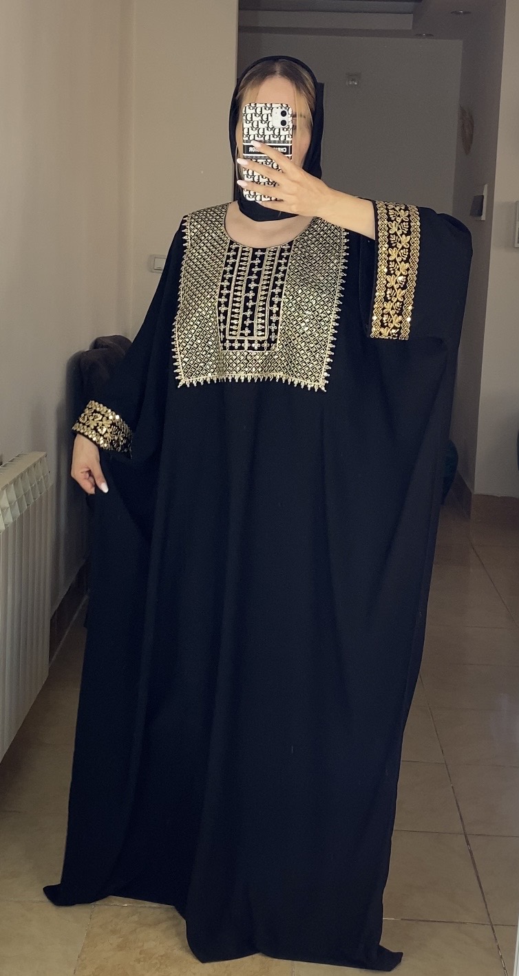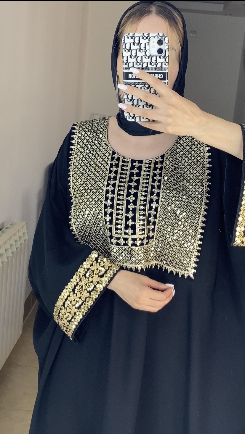 - پارچه کرپ مرغوب و با کیفیت ندا قطری - تن نمایی ندارد و بسیار مشکی هست -پنل و سر مجی ها پولک دوزی هست
