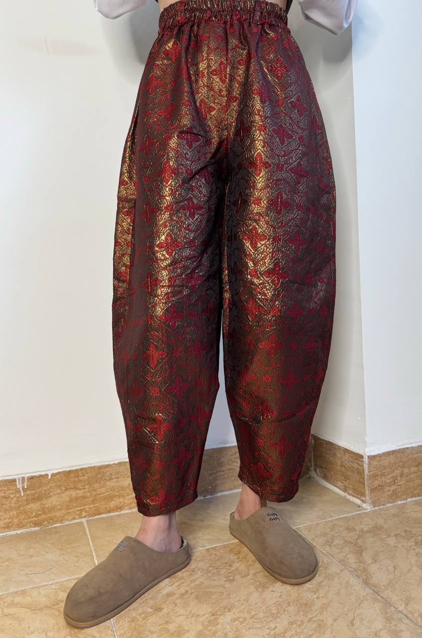 شلوار ققنوسپارچه ژاکارد هندیسایز بندیفری سایز 36تا 42دور ران70 سانتی متردور باسن120 سانتی مترقد شلوار95