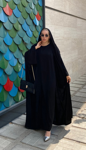 عبا زنانه به همراه سارافن و شال سه پی اس کرپ ندا قطری چی چی مد مدل میسا