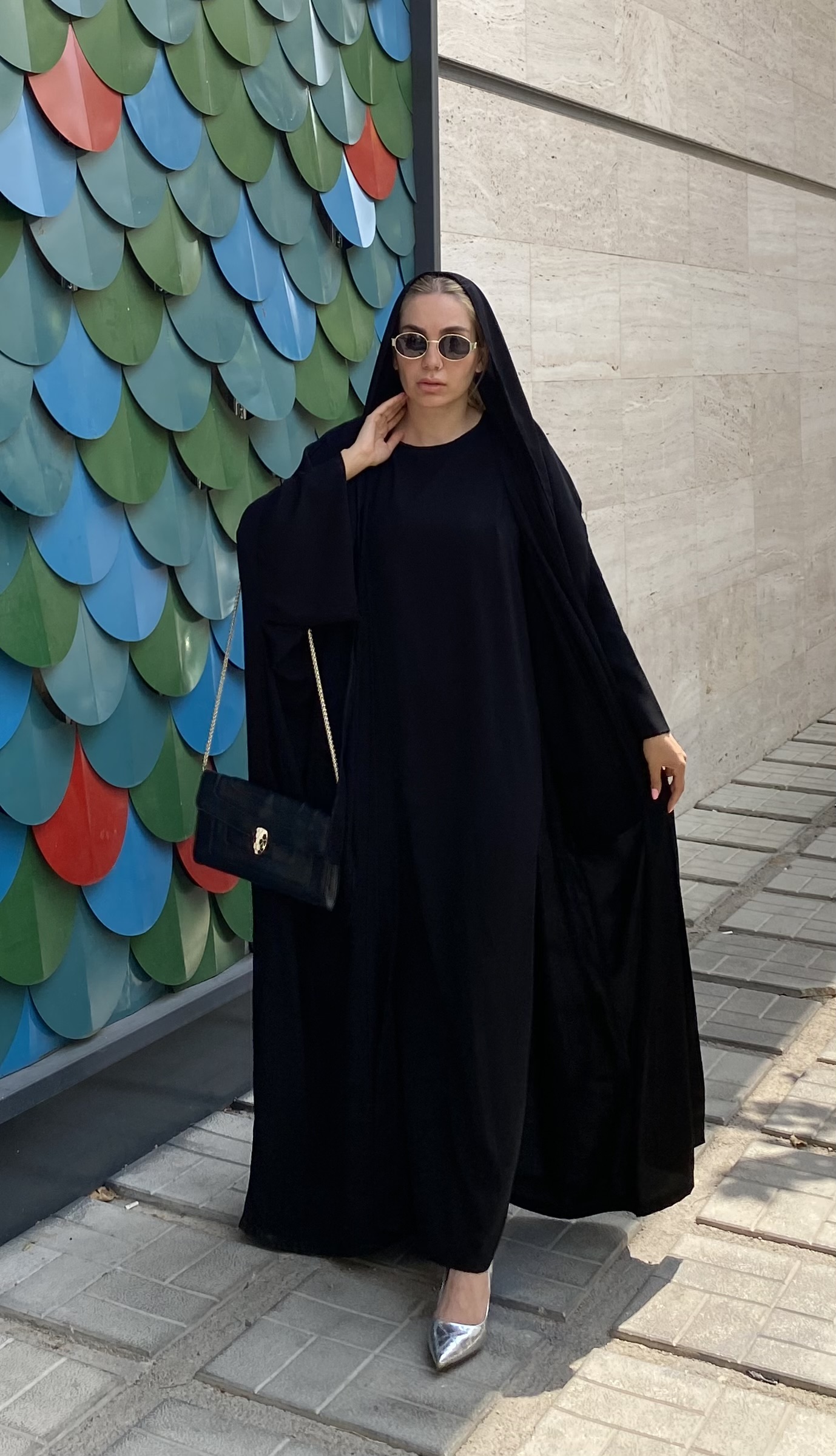 عبا زنانه به همراه سارافن و شال سه پی اس کرپ ندا قطری چی چی مد مدل میسا
